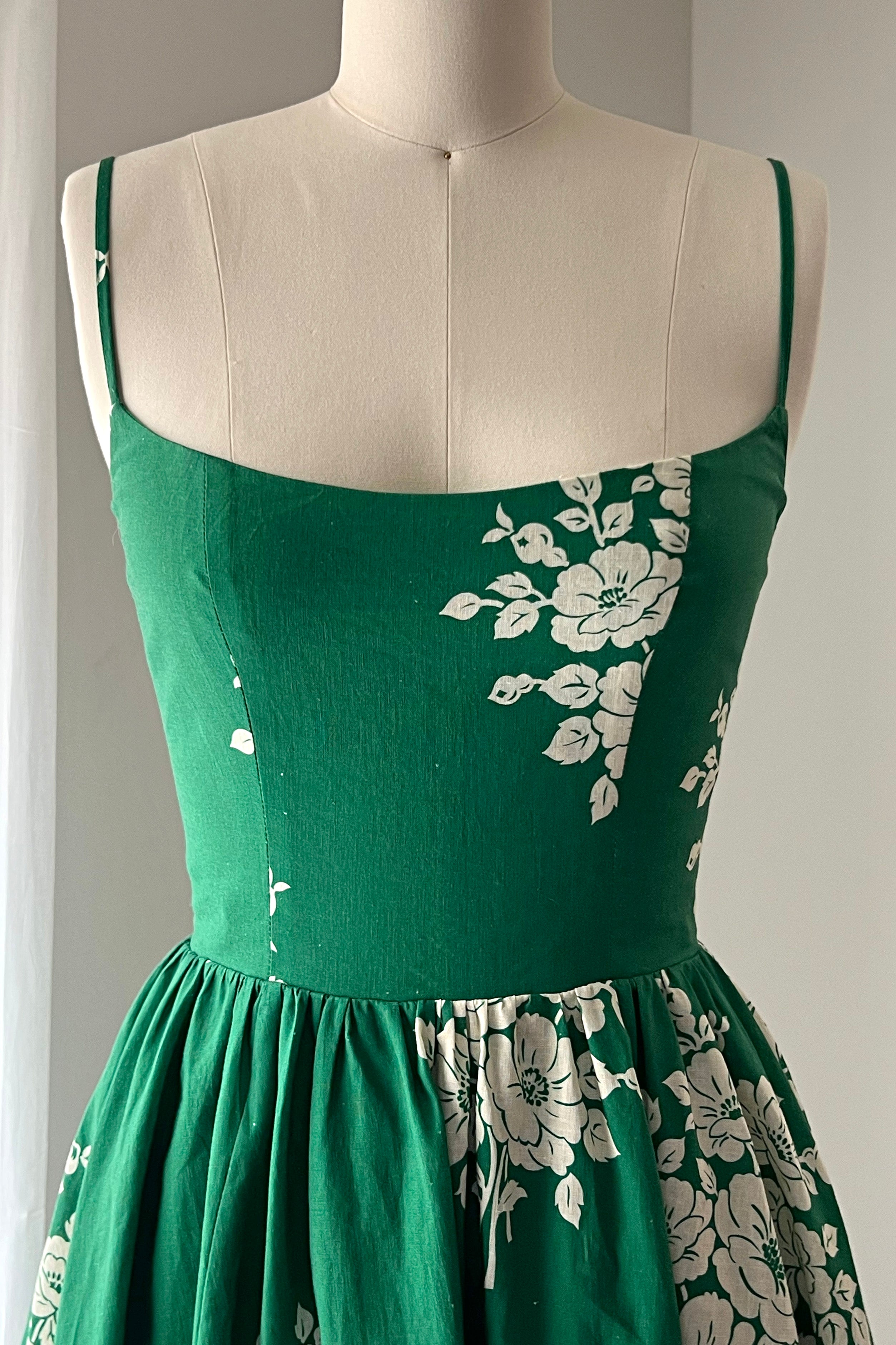 Aurora Midi Dress in Green Vintage Florals Print